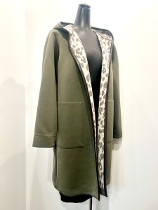 フード裏からのぞくアニマル柄が楽しい、フーデッドコーディガン。